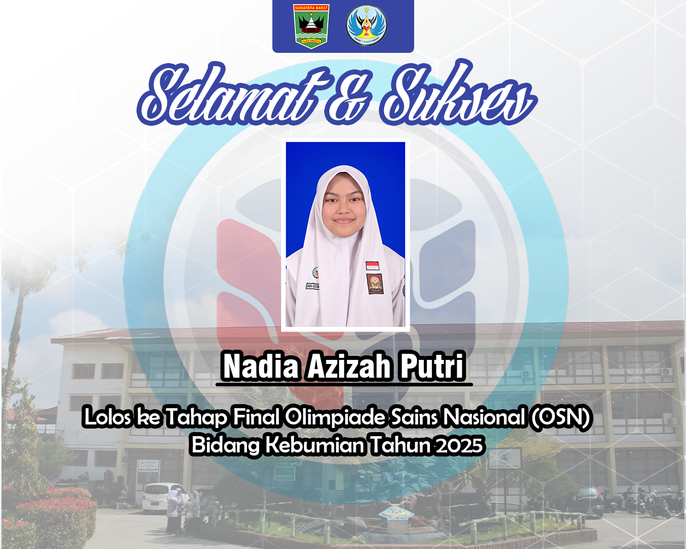 Selamat dan Sukses, Prestasi Membanggakan kembali di torehkan oleh siswa SMAN 1 Bukittinggi, Nadia Azizah Putri berhasil melaju ke tingkat nasional dengan Cabang Bidang Kebumian. Semoga dapat memperoleh hasil yang terbaik.