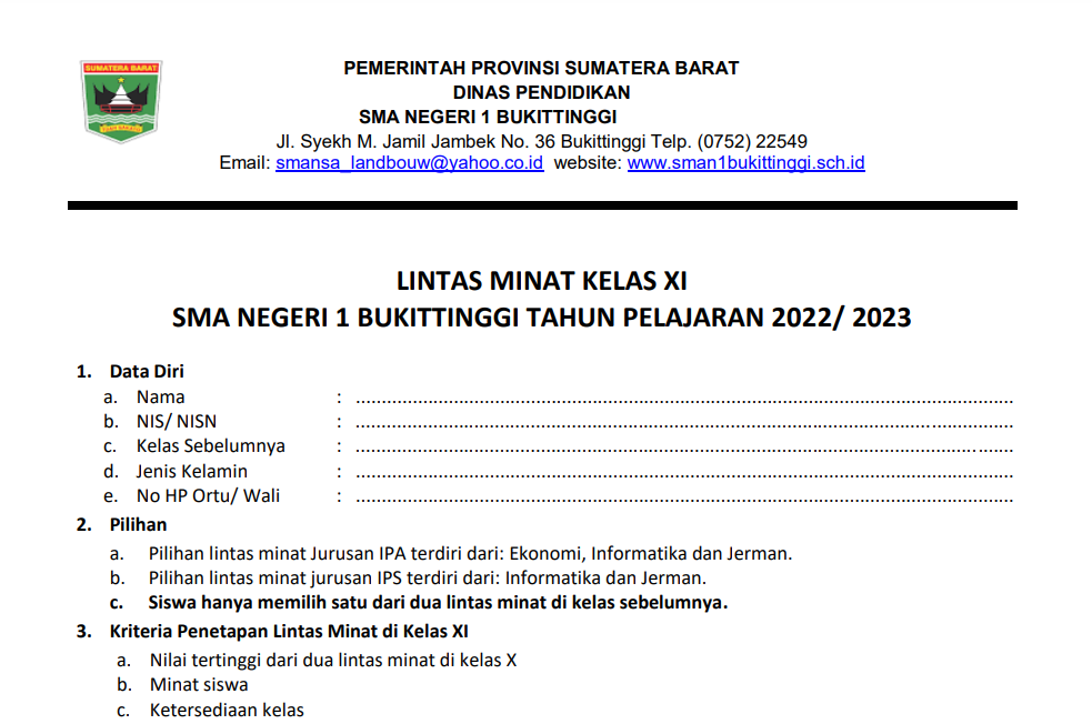Catatan : Bagi Siswa Yang tidak memberikan Angket Lintas Minat nya maka sekolah yang akan menetapkan siswa tersebut sesuai dengan kuota yang tersedia.