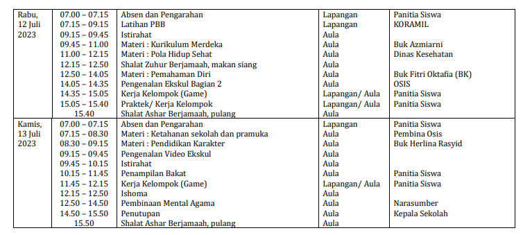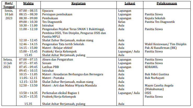 B. RUNDOWN KEGIATAN MPLS SMAN 1 BUKITTINGGI TAHUN 2023/2024