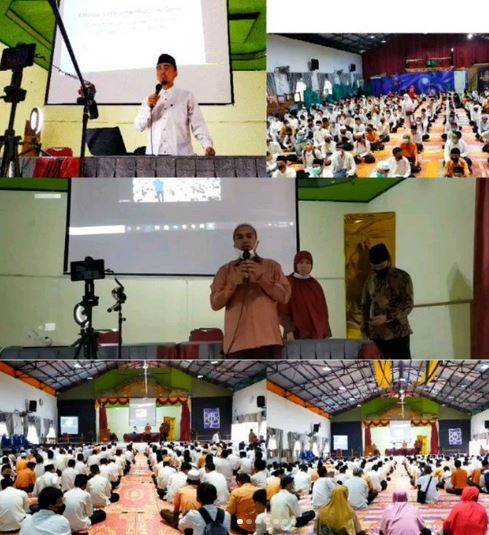 Dalam rangka mematuhi Prokes semua siswa Laki-laki hadir dii Aula sedangkan siswa Perempuan mengikuti materi dari ruang kelas yang ditampilkan di proyektor dengan Live Zoom Meeting.